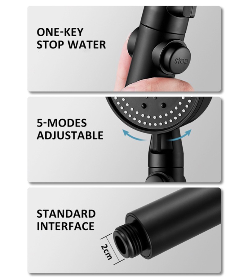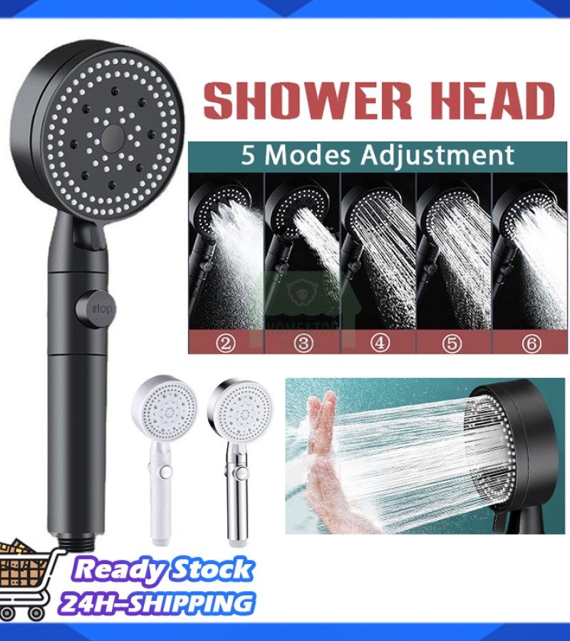 High Pressure Shower Head 5 Modes Adjustable Showerheads with 1.5m Hose Water Saving One-Key Stop Spray Nozzle Bathroom Showerhead Accessories
